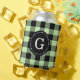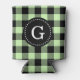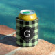 Celery Green Black Buffalo Check Plaid 1I Monogram Can Cooler