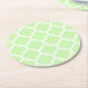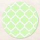 Celery Green White Moroccan Quatrefoil Pattern #5 Round Paper Coaster