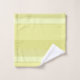 Pleasing shades of celery and celadon towel set has a matching shower curtain and plush bath mat.