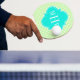 Celery Green and White Polka Dotted Pattern, Aqua Turquoise Quatrefoil 3 Initial Monogram Label