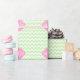A stylish, modern, chic chevron zig-zag pattern in celery green and white. Customise the pink quatrefoil label with your 3 initial monogram, name or other text. (Click on "Customise it" to change the font, adjust font sizes, font colours, etc.)