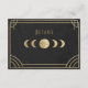 An elegant Art Deco wedding details card featuring celestial moon‑phase artwork, geometric gold accents, and a refined black backdrop. Perfect for stylish, modern weddings seeking a luxurious vintage aesthetic with clear, beautifully presented event information. Note: not real gold or foil.