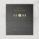 Guide guests to their seats with this elegant celestial place card featuring a black background and faux gold Art Deco detailing. A row of moon phases crowns the design, symbolizing harmony and celebration under the stars. Personalize with names, table numbers, and event details to match your wedding or formal dinner suite. The faux gold accents offer a sophisticated look without metallic printing.