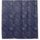Shower curtan features hand drawn celestial and astronomical designs including suns, planets and stars on dark navy background