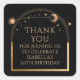 Celestial Birthday Black Gold Thank You Sun Moon Stars Stickers features a gold sun, moon and stars frame on a black background. Personalised with your custom "Thank You" message. Perfect for birthday party favours. Designed for you by ©2022 Evco Studio www.zazzle.com/store/evcostudio