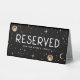 Elegant black and gold celestial wedding tabletop sign "Reserved"