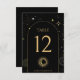 Celestial mystical personalised wedding table number featuring arch frame with galaxy milky way midnight sky, star dust, crescent moon and other astrological symbols in black and golden colours. This table number is easily editable. If you need help with the customisation of this product or you need more matching products for this collection kindly message me via Zazzle.