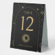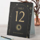 Celestial mystical personalised wedding table number featuring arch frame with galaxy milky way midnight sky, star dust, crescent moon and other astrological symbols in black and golden colours. This table number is easily editable. If you need help with the customisation of this product or you need more matching products for this collection kindly message me via Zazzle.