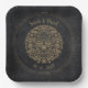 A beautiful Black Paper Plate with Vintage Celestial Background and a Floral Skull The plate can be customised with names and dates.