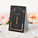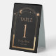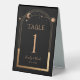 Celestial Black Gold Sun Moon Astronomy Wedding Table NumbersTable Tent Sign features gold sun, moon and stars with a golden frame on a black background. Inside is your custom table number information. Easy DIY table numbers for your wedding or event. Designed for you by Evco Studio www.zazzle.com/store/evcostudio