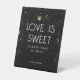 Celestial black and gold wedding pedestal sign "Love is Sweet Please Take a Treat"