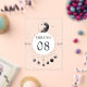 Elegant wedding table number featuring a beautiful illustration showing moon phases and modern typography.