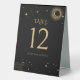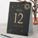 Celestial mystical personalised wedding table number featuring galaxy milky way midnight sky, star dust, crescent moon and other astrological symbols in black and golden colours. This table number is easily editable. If you need help with the customisation of this product or you need more matching products for this collection kindly message me via Zazzle.