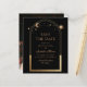 Celestial Black Save The Date Birthday Quinceanera Invitation features a gold sun, moon and stars frame on a black background. Inside is your custom Quinceanera save the date information and on the reverse add your favourite photo. Personalise by editing the text in the text boxes. Designed for you by ©2024 Evco Studio www.zazzle.com/store/evcostudio