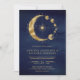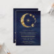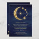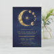 Celestial Blue Gold Crescent Moon Phases Wedding Invitation