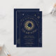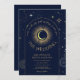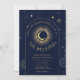 Celestial mystical personalised wedding invitation featuring arch frame with galaxy milky way midnight sky, star dust, crescent moon and other astrological symbols in blue and golden colours and written quote "CAUSE IN THE SKY FULL OF STARS I SAW YOU". This card is easily editable. If you need help with the customisation of this card or you need more matching products for this collection kindly message me via Zazzle.