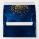 When you open the envelope you see a splash of gold confetti on a dark blue universe background with stars. This is part of matching universe theme wedding collection.