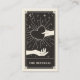 This business card features a tarot card style design in a black and cream colour palette. The illustration shows a hand holding a heart. The background has a moon and twinkling stars. This would be perfect for any makeup artist, salon, hairdresser or beautician who prefers an alternative style referral card and wants to make their business card memorable. This card offers your customer a percentage discount on their next appointment if they refer a friend.