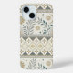 A seamless folk-art inspired pattern phone case combining celestial and botanical elements in earthy tones of beige, gold, teal, and cream. The central band features stylised leaves, flowering branches, crescent moons, and stars, framed by intricate geometric borders of diamonds, zigzags, and circles. With its cultural and artisan feel, this design blends nature with celestial charm, creating a timeless rustic aesthetic. Ideal for folk art enthusiasts, boho and tribal design lovers, or anyone drawn to celestial and botanical motifs. Perfect for seasonal décor, artisan gifts, and rustic-inspired celebrations.