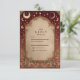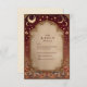 A luxurious celestial wedding design framed in deep burgundy and antique gold. This ornate baroque invitation features glowing moons, stars, and cosmic filigree — blending old-world romance with a touch of divine mystery. Perfect for celestial, gothic, or royal-themed weddings seeking a timeless yet magical aesthetic.