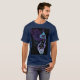 I give wanted to give this a 4 instead of a 5 because these Basic DARK T0shirts run unexpectedly SLIM or Narrow. Which is great if you do not have a potbelly, but I have a paunch. It isn't the shirt's fault that I've got a beer belly. The design and shirt itself is a quality cotton shirt. The color is more of a deep purple, but still a very pretty color. The Basic DARK T-shirts run a bit SLIMMER than the Basic Ts. The neck is a fraction narrower (or seems to be narrower) also. I'm a paunchy middle-aged woman and my neck is 12 inches (31cm) thick and the neckline fell about the same as in the photo of the man, and I had the desire to tug it a bit. So if you're a thick necked man or like loose shirts, be aware these are slimmer shirts. Once I get rid of my lockdown paunch it'll look great. The shirt washed well in cold water with no apparent bleeding. We don't have a dryer, so it hung dry. Did not shrink. Love the colors and the design. The design looks smaller on my shirt than it does on the model on-line. But still, it looks good on the shirt. The printing looks as it does on the model, just the size seems fractionally smaller. Washed garment in cold water, hung dry and design appeared unaffected.
