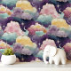 Drift away to a dreamy wonderland with this enchanting celestial wallpaper. Soft, colourful clouds adorned with shimmering stars and crescent moons create a calming and magical atmosphere. This peel and stick wallpaper is easy to apply and remove, making it perfect for adding a touch of whimsy to bedrooms, nurseries, or any space that needs a touch of celestial beauty.