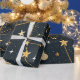 Mystical constellation pattern wrapping paper featuring golden stars, celestial lines, and dreamy clouds across a dark night sky background. Ideal for astrology lovers, stargazers, astronomy fans, spiritual seekers, and anyone who loves cosmic and celestial style.