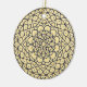 A lace-like concentric circle mandala in dark blue with bright blue and gold star-like dots spangled among the layers makes for a fun, design that brings to mind a starry night sky.