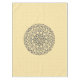 A lace-like concentric circle mandala in dark blue with bright blue and gold star-like dots spangled among the layers makes for a fun, design that brings to mind a starry night sky.