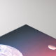 This surreal image captures a breathtaking desert landscape under an otherworldly sky. Towering rock formations dominate the scene, surrounded by sparse desert vegetation, including cacti and Joshua trees. The sky is painted in hues of pink and purple, creating a dreamlike atmosphere. A massive, luminous moon with intricate surface details looms large in the background, while a smaller celestial body floats nearby. The juxtaposition of the stark desert terrain with the ethereal celestial elements creates a striking and imaginative visual experience.