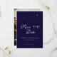 Celestial Elegant Script Midnight Blue Wedding Photo Save the Date