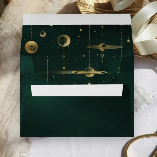 Celestial Emerald Gold Crescent Wedding Program