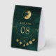 Elegant wedding table number featuring a beautiful illustration showing moon phases and modern typography.