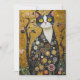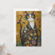 This image features a stunning cat rendered in the artistic style reminiscent of Gustav Klimt. The cat, with its striking yellow eyes, white and black fur, and intricate, swirling patterns on its body, exudes a regal and mysterious aura. The background is richly detailed with golden hues, organic shapes, and floral motifs, blending seamlessly into the cat's figure, which is adorned with ornate circular patterns and delicate embellishments. The overall effect is a mesmerising fusion of natural beauty and luxurious, ornamental design.