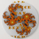 Dark Yellow/Gold: The text colour complements the warm tones of the fractals, ensuring a striking contrast against the light grey backdrop.