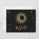 Celestial mystical personalised wedding response card featuring galaxy milky way midnight sky with star dust, crescent moon and other astrological symbols in black and golden colours. This card is easily editable. If you need help with the customisation of this card or you need more matching products for this collection kindly message me via Zazzle.