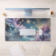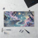 Elevate your workspace with this stunning desk mat featuring a cosmic galaxy design in vibrant pastel hues. The flowing celestial patterns, twinkling stars, and intricate golden geometric accents create a harmonious blend of art and functionality. Perfect for adding a touch of elegance and inspiration to any desk setup.