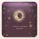 Celestial Gold Sun And Moon Stars Burgundy Square Paper Coaster