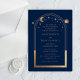 Celestial Blue Gold Sun Moon Astronomy Wedding Acrylic Invitations features gold sun, moon and stars with a golden frame on a blue acrylic background. Inside is your custom wedding invitation information. Personalise by editing the text in the text boxes. Designed for you by Evco Studio www.zazzle.com/store/evcostudio