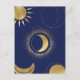 Celestial gold sun moon phases eclipse on a purple blue background.