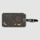 Celestial golden stars, moon and constellations on a black background. Cute luggage tag for your travels.