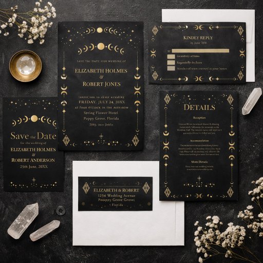 Celestial Gothic Black and Gold Save the Date Card