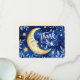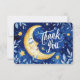 Overall, the thank-you card captures a sense of appreciation that is both celestial and heartfelt, inviting the recipient to bask in the warmth of the crescent moon's grateful gaze under a beautifully painted night sky.