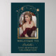 Celestial Green Gold 30th Birthday Welcome Poster features an elegant gold sun, moon and stars frame on a forest green background. Inside is your favourite photo and below your birthday welcome sign information. Personalise by editing the text in the text boxes and adding your favourite photo. Designed for you by ©2024 Evco Studio www.zazzle.com/store/evcostudio