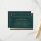 Celestial Green Gold Sun Moon Stars Wedding Accommodation Enclosure Card features a gold coloured sun, moon and stars frame on a green background with your wedding accommodation information in the centre. Personalise by editing the text in the text boxes. Designed for you by ©2022 Evco Studio www.zazzle.com/store/evcostudio