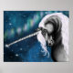Celestial Guardian: Grey Unicorn with Aurora Dance Poster