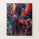 Embark on an interstellar journey with this stunning depiction of the "Celestial Guardian," a futuristic cosmic protector blending human elegance with extraterrestrial technology. With vivid red and blue tones, intricate biomechanical details, and a vibrant celestial backdrop, this artwork takes you to another dimension. Perfect for sci-fi enthusiasts and art lovers, this puzzle transforms into a masterpiece worth framing.