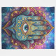 An artistic and detailed representation of the hand of Fatima, a powerful symbol of protection and good fortune, adorned with intricate designs and an all-seeing celestial eye.