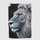 Ai art depicting a black and white lion on a mystical night with a starry background.