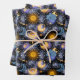 Celestial Magical Pattern Moon Stars Sun Black Sky Wrapping Paper Sheet